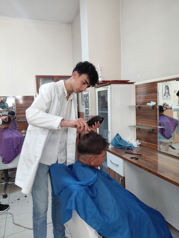Patnos Mesem Erkek Kaförü öğrencilerimiz tarafından Ustalık Beceri sınavında toplumsal dayanışma adına Kerem Şahin Ortaokulu öğrencilerinin saç kesimi yapıldı.